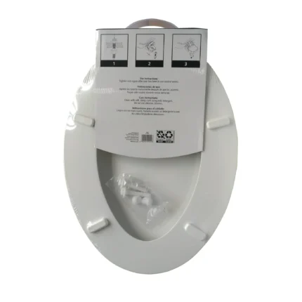 Elongated White Wood Toilet Seat, Easy Clean